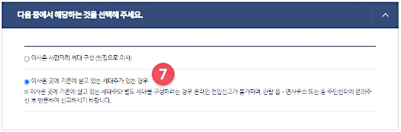 (세대주 확인이 필요한 경우 신청 완료된 것이 아니며, 7일 이내 세대주 확인 시 전입신고 신청이 완료됩니다.)