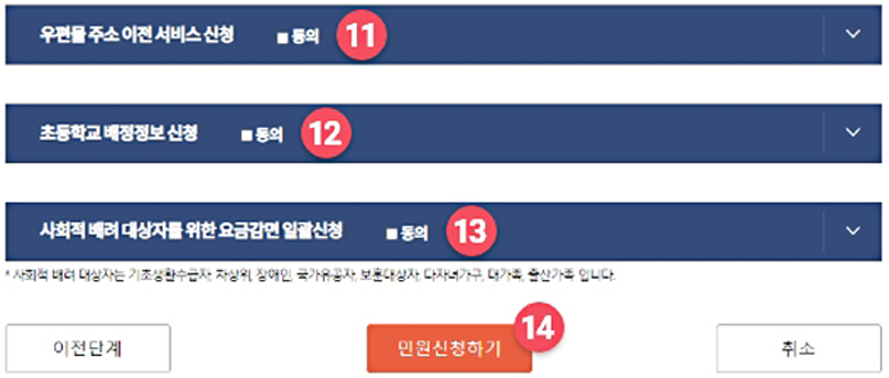 ⑪ 우편물주소 이전 서비스를 신청하면 3개월간 이사 가는 곳으로 우편물을 받을 수 있습니다. (선택사항)